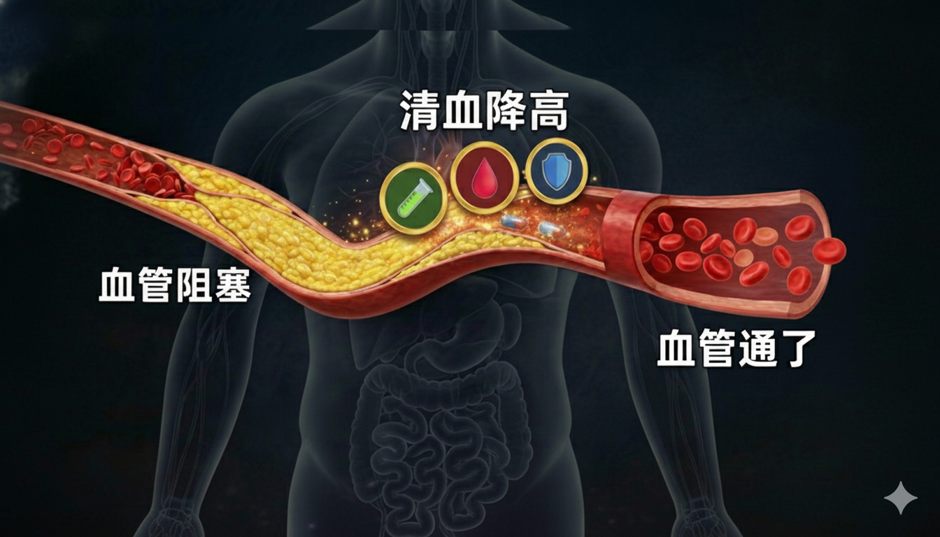 血管里的化油高手,专清血管里的‘脏油’。油清掉了,血液自然顺。